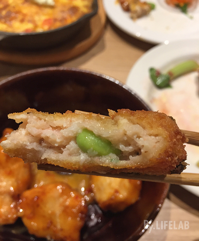 這道蠻討我們喜的是"新鮮香料蔬菜蝦餅",外酥內軟的口感,內餡是由蝦仁、豆腐、毛豆組成,炸得剛好,