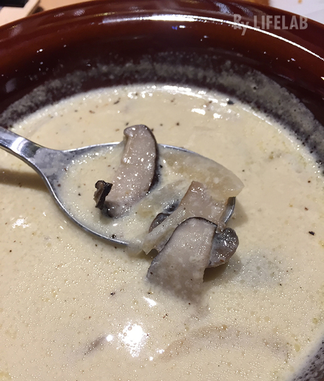 接著上了"秋菇奶油湯",喜好菇類的鄉親們別錯過了!湯裡面浸泡著多種烤過的菇,隨便一撈都是菇。